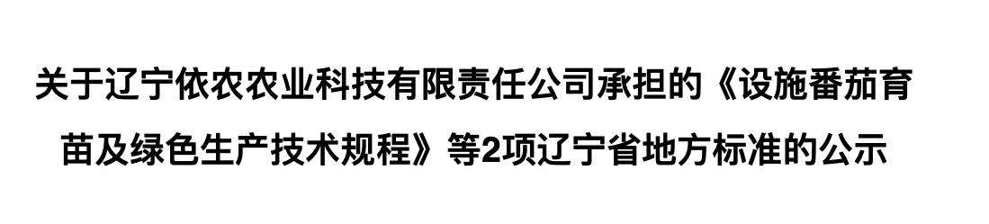 根據遼寧省地方標準管理辦法(遼農監(jiān)[2017]34號)要求,現(xiàn)將遼寧依農農業(yè)科技有限責任公司和遼寧省農業(yè)科學院共同承擔的《設施黃瓜育苗及綠色生產技術規(guī)程》征求意見稿和《設施番茄育苗及綠色生產技術規(guī)程》等2項遼寧省地方標準進行公示,并面向社會征求意見.